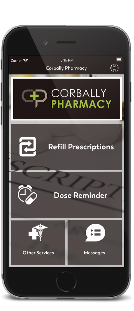 Download the Refill Assistant App, enter our code ”1349930” and select ”Corbally Pharmacy”